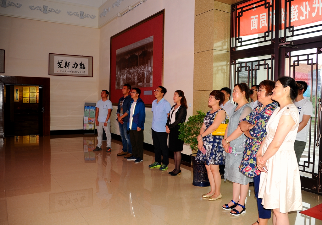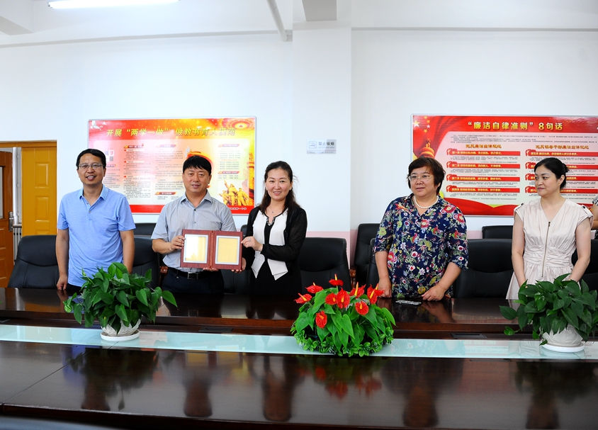 之后,全体党员参观了阿荣旗第一中学,校长于宏伟为大家详细介绍了学校的整体情况。阿荣旗一中是内蒙古自治区级示范性普通高中,阿荣旗唯一一所普通高中,全国文明单位。学校以内涵发展为核心,以“不放弃每一个学生,不放弃学生发展每一个方面”为育人目标,坚持文化立校、机制强校、质量兴校的原则,走出了一条“科学与人文”有机融合的发展之路。近年来,该校积极探索适合新课改要求的教学方法,推广了“五环教学法”,使高考成绩逐年攀升,现已位居呼伦贝尔市第一方阵。随后,他带领大家参观了学校的教学楼、体育馆、游泳馆和党员活动中心。在学校会议室,校党委副书记齐宏伟向阿荣旗一中校长于宏伟赠送了《齐大赋》,表达了开展校级合作的意向。在党员活动中心,墙上的党员“奉献”积分管理记录卡引起了大家的兴趣,在记录卡上详细记载了该校党员教师在各项活动中的积分情况,通过量化的管理方式,进一步激发了党员教师立足本职工作,教书育人的内在动力。参观过后,大家纷纷表示阿荣旗一中的这种党员“奉献”积分管理办法非常值得我们借鉴和参考。