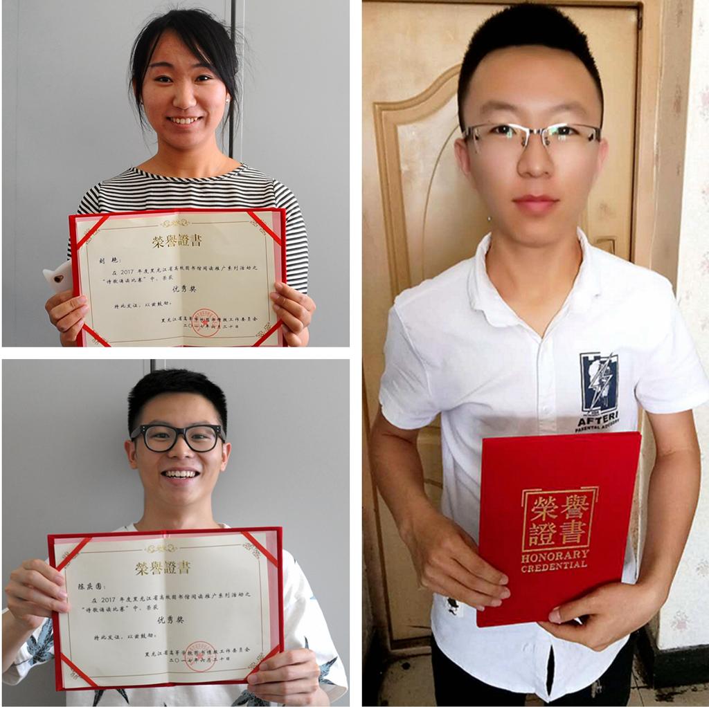 参赛选手声情并茂,饱含对阅读的喜爱和对诗歌的敬仰,深刻解读名家作品,深情演绎诗歌意境,使观众身临其境地感受读书的魅力、文字的优美、书香的陶醉、文化的盛宴。经过激烈角逐,我校唐志强同学在“诗歌诵读比赛”中荣获三等奖,刘艳同学和陈庆圆同学在“诗歌诵读比赛”中荣获优秀奖。