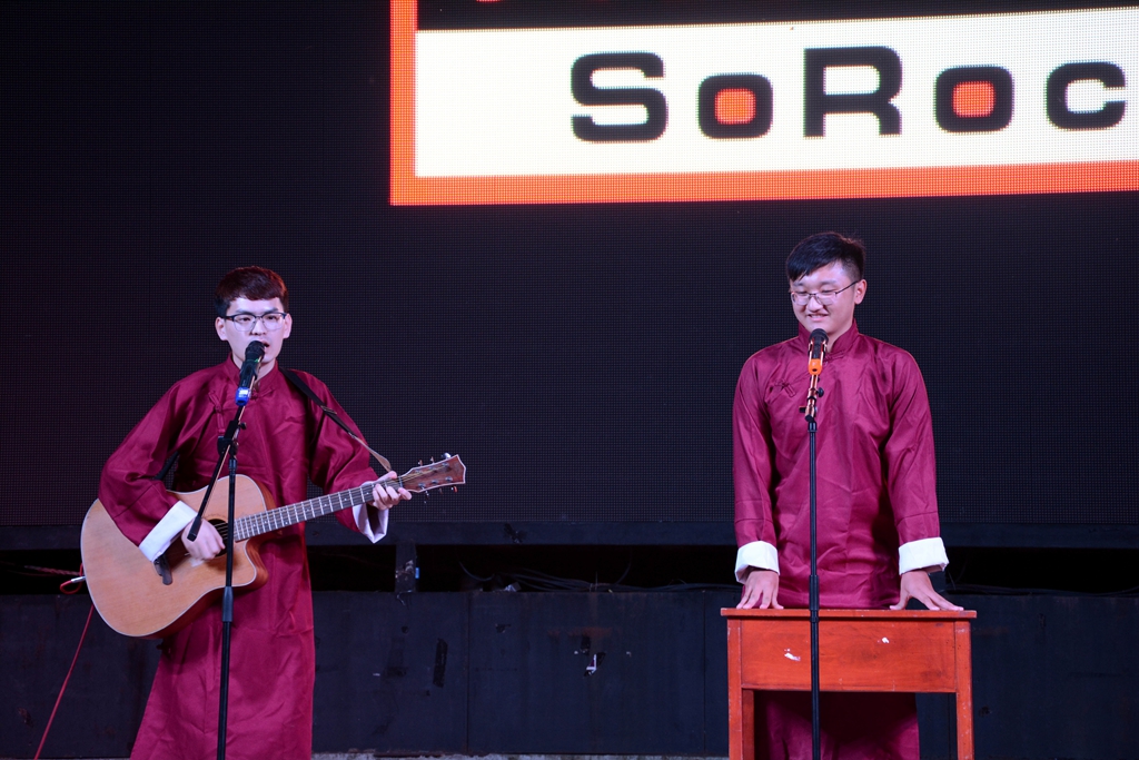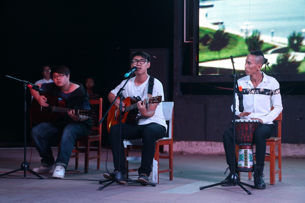 藏族学生平措旦增和普达杰带来的歌曲《离乡》表达了他们浓浓的故乡情,动情的演唱让离家在外求学的新生有着强烈的共鸣。普达杰表示:“对于之前取得的成绩,我感到很开心,我会继续努力的,不会骄傲,把我热爱的音乐继续做好,继续热爱下去。”