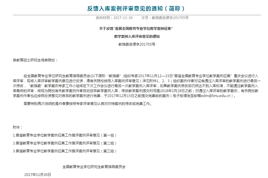 近日,全国教育专业学位研究生教育指导委员会发布了《关于反馈"首届全国教育专业学位教学案例征集”教学案例入库评审意见的通知》,我校外国语学院李凯华、王云老师共同提交的《W老师的一堂高中英语任务型教学课》教学案例成功入选中国专业学位教学案例中心案例库,成为我校首篇入库案例。