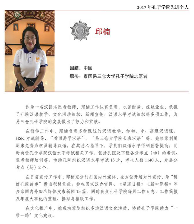 邱楠校友在回信中说,感谢母校师生的关心与挂念,校友会的贺信让我感到十分的荣幸与自豪。借此机会,向所有关心帮助我的各位领导、老师表示最衷心的感谢与最诚挚的祝福!作为一名齐大人,无论走在世界的任何角落,我都铭记着“养正毓德、精存自生”的校训,做一个至诚明理的中华文明传播者。传播汉语文化是我为之奋斗终身的事业,我将时刻牢记自己的责任与使命,贡献自己的点滴力量!