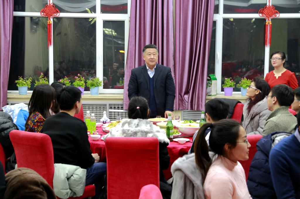 校长马立群,党委副书记齐宏伟,副校长王刚,副校长李英杰等校领导以及学生工作部(学生处)、后勤管理处、学校办公室、学校保卫处、高教研究与教学质量评估中心等职能部门的负责人来到这里,与新入职的青年教师们一起包饺子,庆元旦,迎新年。