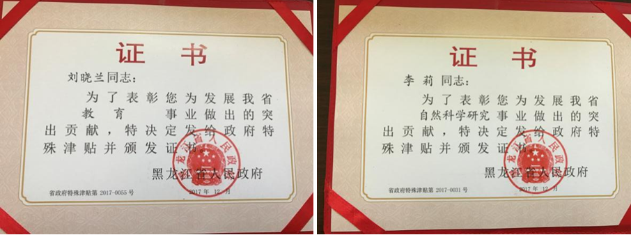 近日,黑龙江省人力资源和社会保障厅公布了《关于于天夫等200名同志享受省政府特殊津贴的通知》(黑人社函〔2018〕51号),我校食品与生物工程学院刘晓兰教授、材料科学与工程学院李莉教授获得了2017年度省政府特殊津贴。