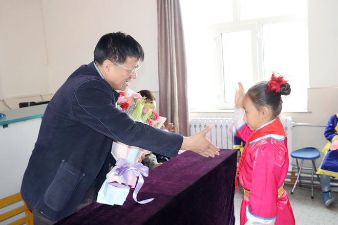 上午10点30分,捐资助学活动正式开始,哈拉达小学对我校师生的到来表示热烈欢迎以及衷心感谢,并以视频的形式回顾了这二十年来“鸿雁工程”与哈拉达小学建立的深厚情义。哈拉达小学的学生代表特意向“鸿雁工程”发起人之一的杨淳老师献花来表示这二十年来他对“鸿雁工程”所付出的辛劳汗水与做出的巨大贡献。