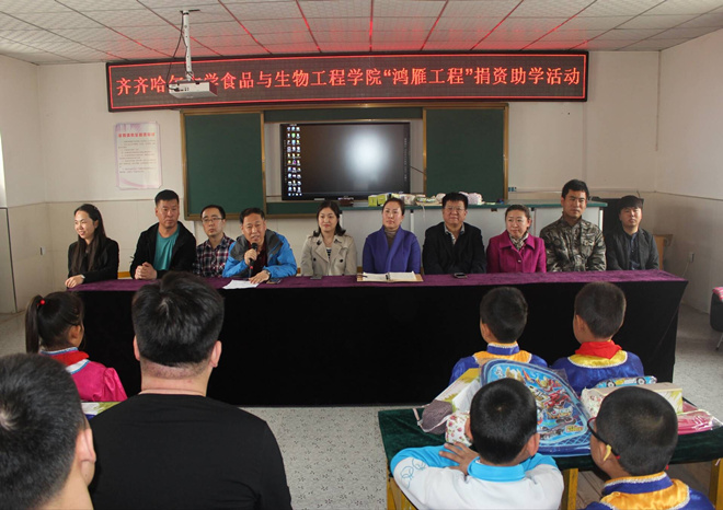 为传承与发扬志愿服务精神,2018年4月20日,我校师生一行四十余人赴梅里斯区哈拉达族小学开展“鸿雁工程”捐资助学活动。我校团委书记苏醒,我校正处级辅导员杨淳,食品学院党委副书记、副院长赵振华,学生(部)处资助科科长李静,学生(部)处资助科王环宇,校团委周一杨,食品与生物工程学院团委书记、学工办主任李海明,辅导员于成野及“鸿雁工程”志愿服务队学生参加了本次活动。