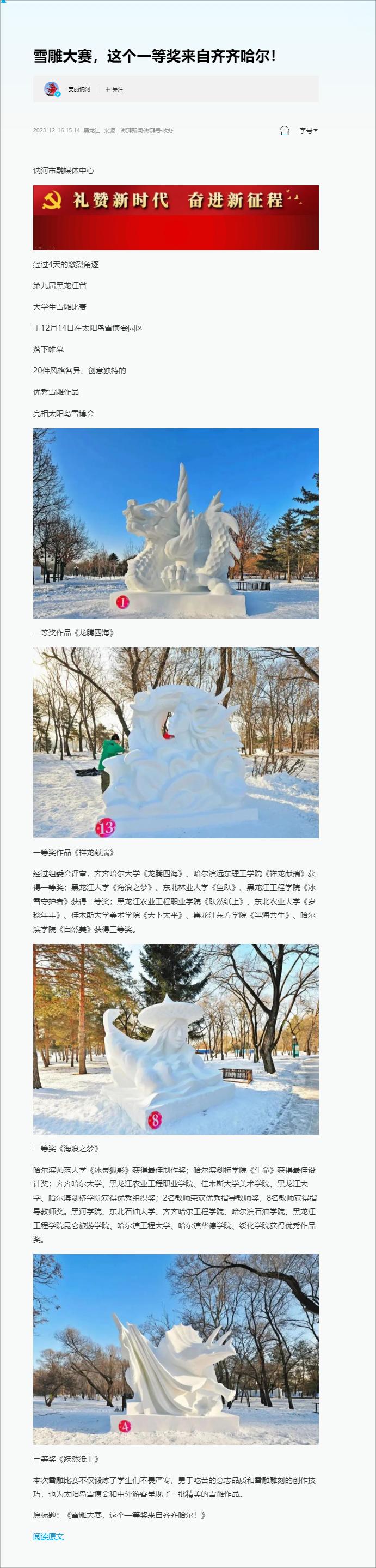 【鹤城发布】雪雕大赛,这个一等奖来自齐齐哈尔!