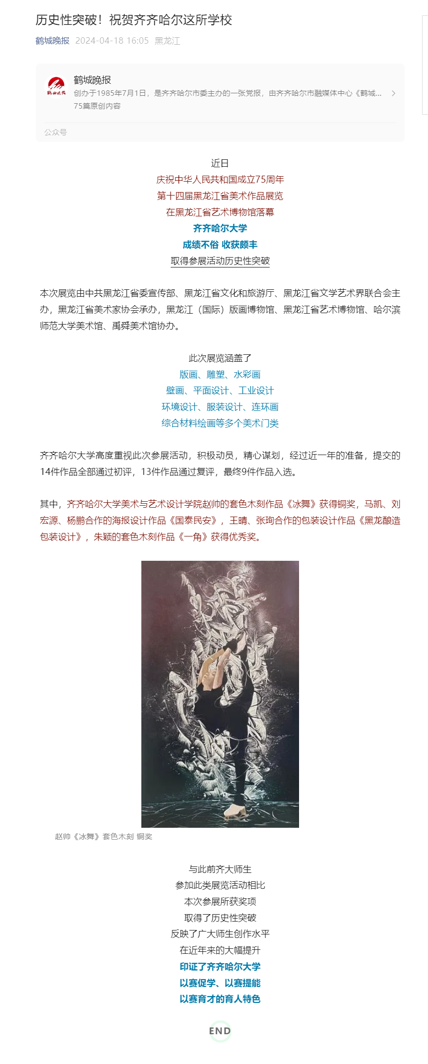 上一条:【齐齐哈尔新闻网】第十四届黑龙江省美术作品展览hg0022体育皇冠地址《冰舞》获铜奖