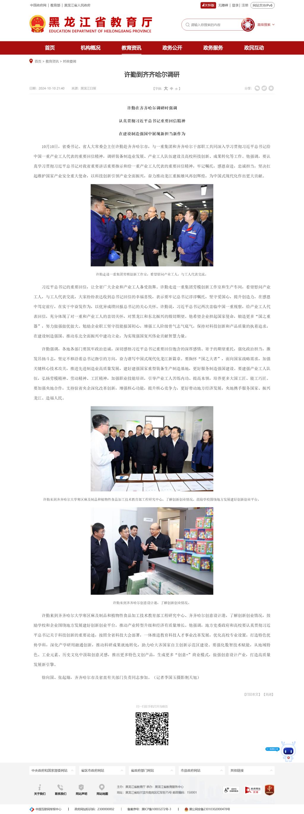 【黑龙江省教育厅】许勤到齐齐哈尔调研
