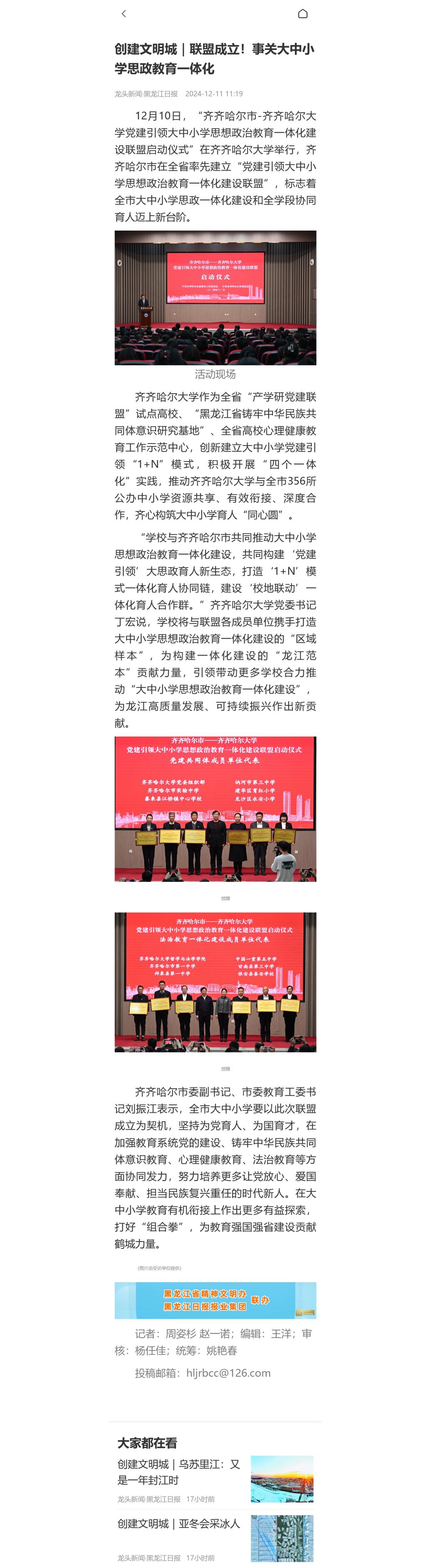 下一条:【黑龙江新闻网】齐齐哈尔思政教育创新采用大中小学“1+N”模式