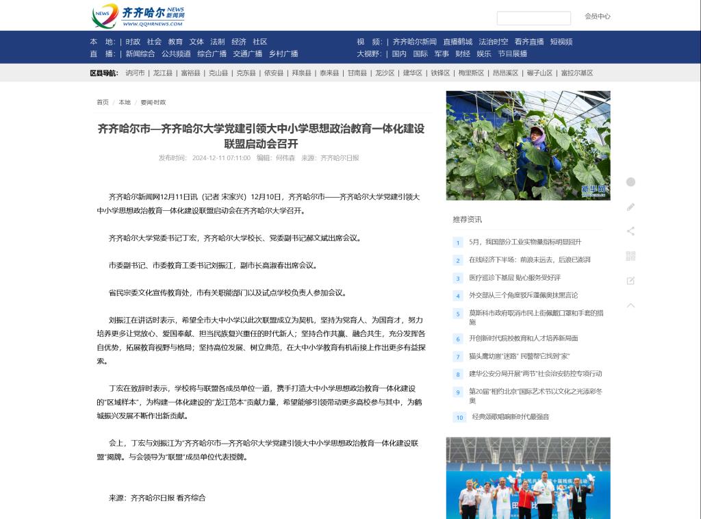 【人民网】齐齐哈尔思政教育创新采用大中小学“1+N”模式
