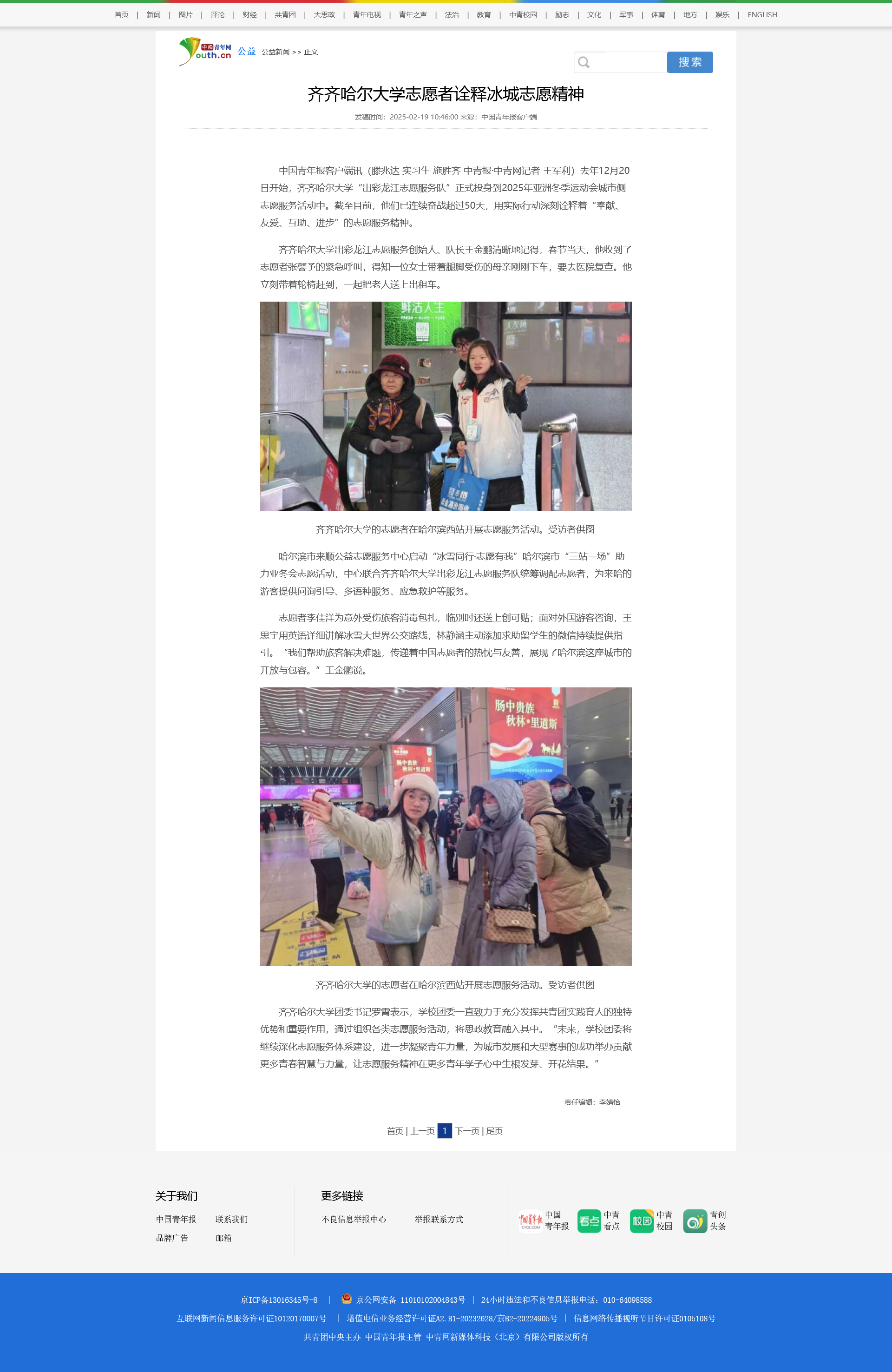 【中国青年网】hg0022体育皇冠地址志愿者诠释冰城志愿精神