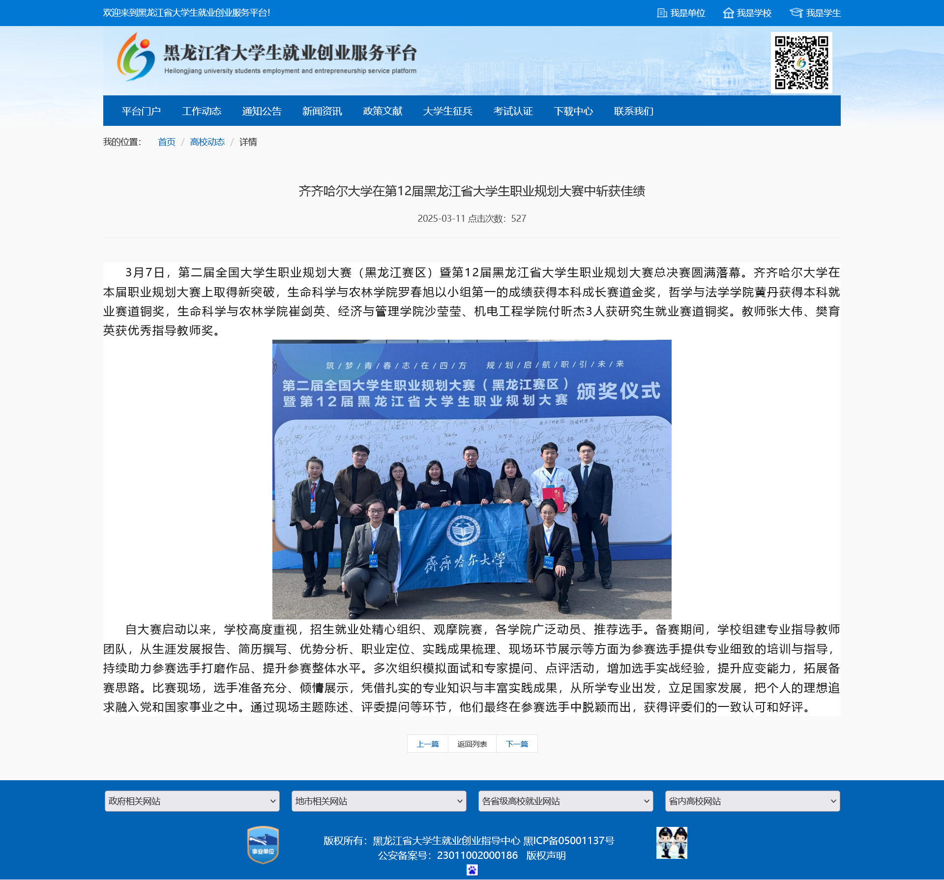 【黑龙江省黑龙江省大学生就业创业服务平台】hg0022体育皇冠地址在第12届黑龙江省大学生职业规划大赛中斩获佳绩