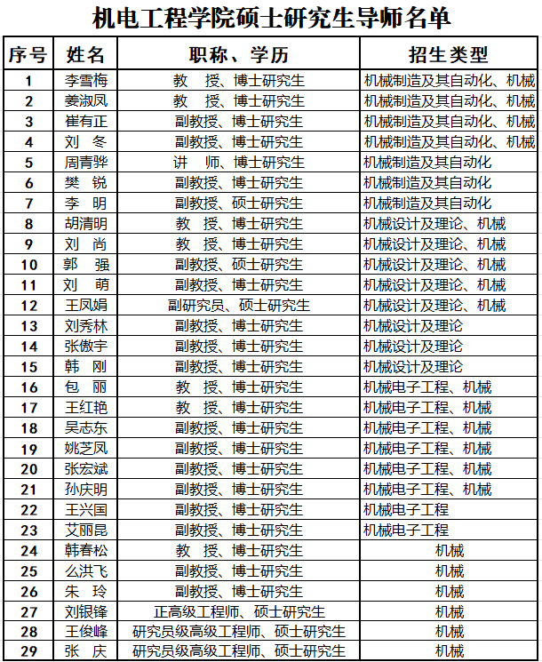 机电工程学院硕士研究生导师名单