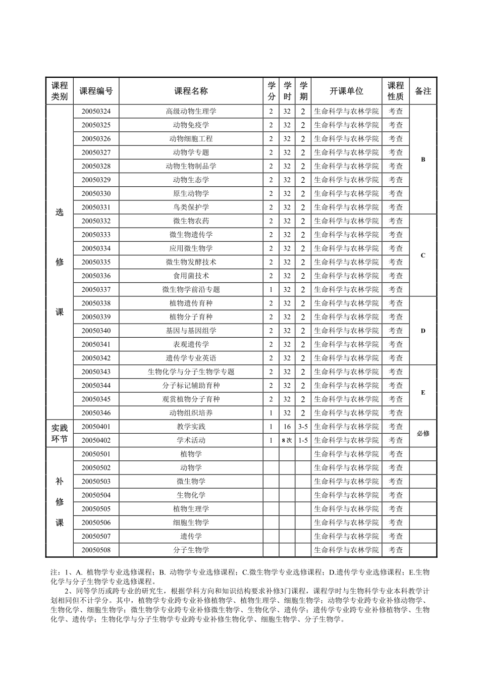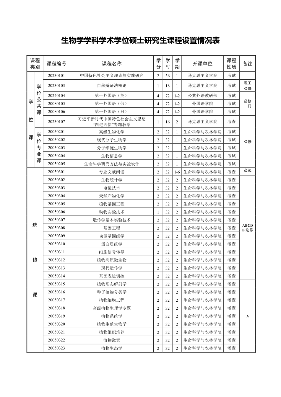 生物学学科攻读硕士学位研究生培养方案