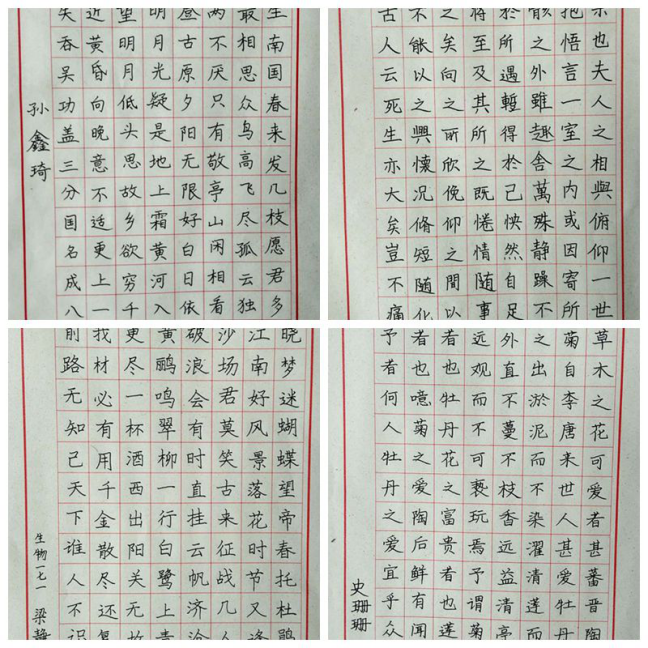 本次比赛分粉笔字组和钢笔字组,参赛选手们纷纷展示了各自书法的表现风格和书写能力。既有一气呵成、笔画遒劲、笔势生动的粉笔字书法,也有错落有致、刚柔并济的钢笔字书法。经过激烈的角逐,粉笔字组的孙佳艺、李想、白小丽,钢笔字组的韩静鑫、陈镜屹、史珊珊分别获得本次比赛各组别的一等奖。本次比赛,为学生搭建一个锻炼自己、展示风采的平台。