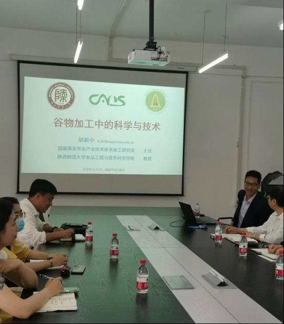 在会上,胡新中教授首先介绍了陕西师范大学食品工程与营养科学学院及其团队的基本情况,随后毫无保留地分享了其在谷物加工方面的宝贵经验,尤其就燕麦食品加工与技术创新、荞麦功能食品加工与技术创新、小麦面制主食加工技术创新、天然乳化剂多糖构效关系、谷物加工中抗性淀粉形成等相关方面的研究方法和研究成果进行了详细全面的介绍。最后,胡新中教授就如何从生产中发现“科学问题”、如何有效实现科技成果转移转化等方面做了详细的阐述。
